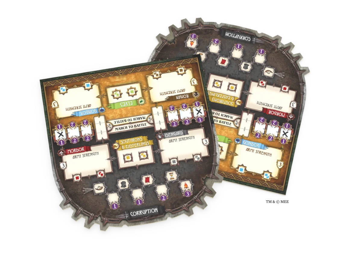 In Circle of Conflict you simultaneously command both The Shadow and The Free Peoples armies against the players on either side of you. As the dice are rolled, you will decide how to apply the results.
